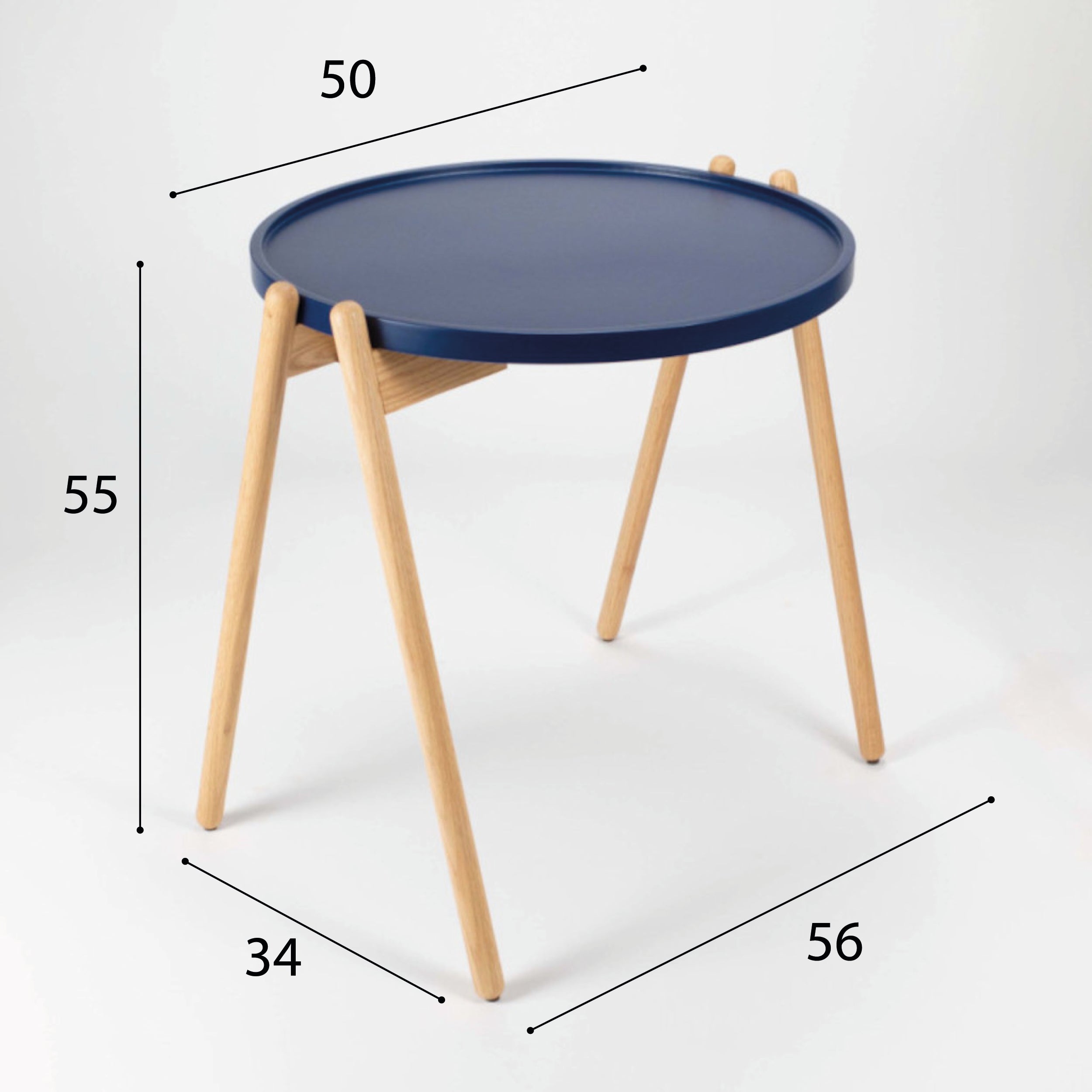 Mesa auxiliar de diámetro 50 cm. Con sobre lacado y bastidor en madera de fresno macizo.
